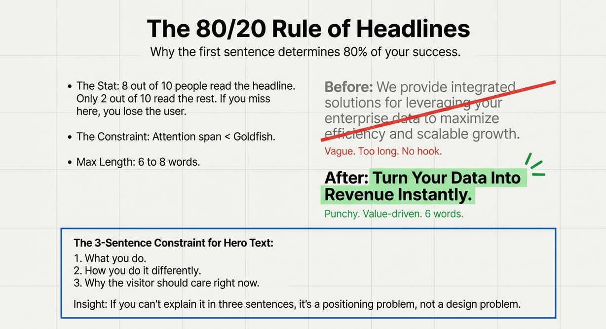 I liked to force a constraint here—three sentences, maximum. If you couldn’t explain your value in three sentences, the issue wasn’t the design. It was the positioning.